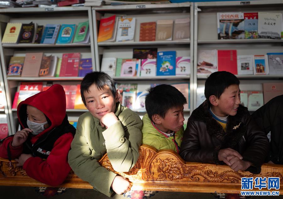 雙湖縣嘎措鄉(xiāng)的牧民孩子在閱覽室里(1月31日攝)。 新華社記者 普布扎西 攝