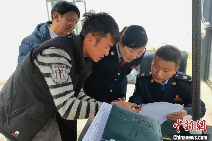 圖為那曲市色尼區(qū)稅務(wù)工作人員到當?shù)剞r(nóng)牧企業(yè)了解企業(yè)信息。國家稅務(wù)總局那曲市色尼區(qū)稅務(wù)局 供圖