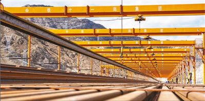 4月23日,拉林鐵路今年復(fù)工以來的首列長鋼軌進(jìn)入?yún)f(xié)榮鋪架基地。袁泉 丁慶濱 攝