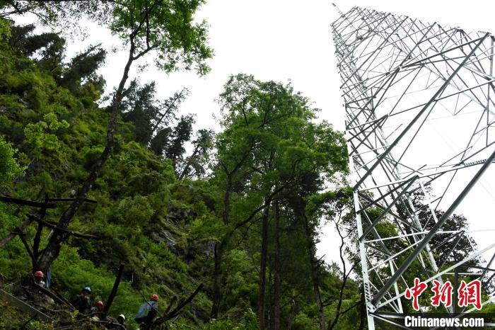 圖為圖為西藏林芝市原始森林中“三區(qū)三州”電網(wǎng)建設(shè)現(xiàn)場(chǎng)。 李東淮 攝