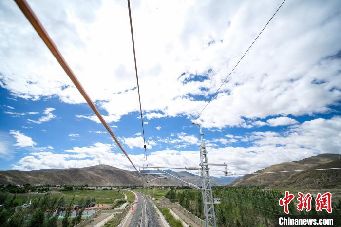 7月6日,拉林鐵路接觸網(wǎng)專業(yè)首件工程在西藏山南市扎囊至扎其區(qū)間成功建成。何蓬磊 攝