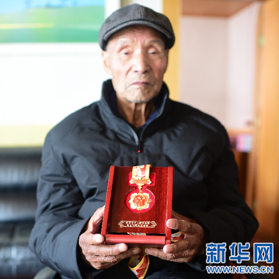 12月31日,吳多吉老人和他的“慶祝中華人民共和國(guó)成立70周年”紀(jì)念章。新華網(wǎng) 張宸 攝