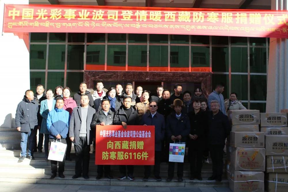 2021年1月8日,“中國(guó)光彩事業(yè)波司登防寒服情暖西藏”捐贈(zèng)儀式在拉薩隆重舉行。西藏自治區(qū)黨委統(tǒng)戰(zhàn)部副部長(zhǎng)、西藏自治區(qū)工商聯(lián)黨組書記王念東,波司登集團(tuán)黨委副書記、波司登公益基金會(huì)理事長(zhǎng)朱鈞,西藏自治區(qū)工商聯(lián)黨組成員、副主席陸紅軍,西藏自治區(qū)工商聯(lián)黨組成員、副主席、秘書長(zhǎng)、西藏自治區(qū)光彩事業(yè)促進(jìn)會(huì)秘書長(zhǎng)張蓉出席了捐贈(zèng)儀式。