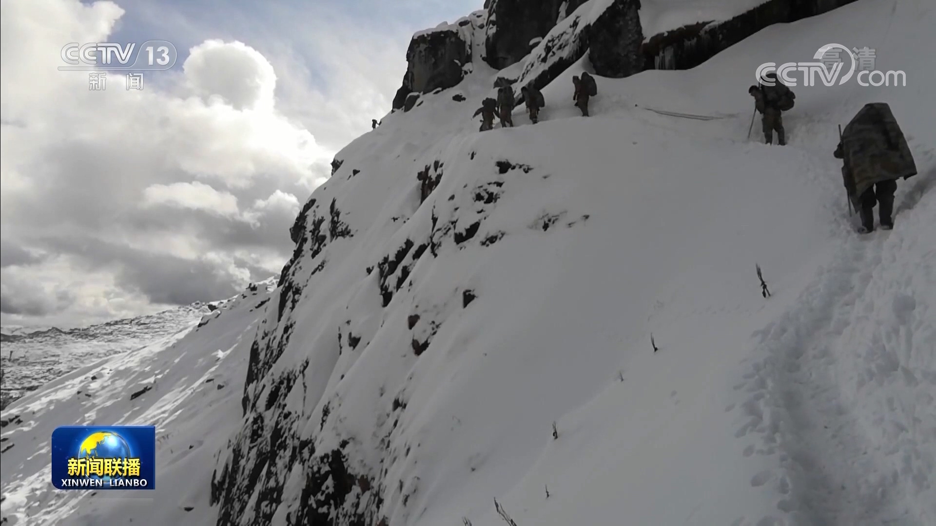 隨著海拔的升高,官兵們來到了巡邏路上最危險(xiǎn)的雪山虎口崖路段。