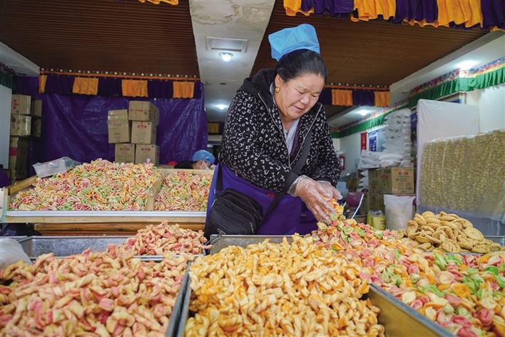 如今生活越來越便利,很多人都會選擇在市場直接購買現(xiàn)成的卡塞與德卡等年貨,除了“尼珍藏式咔噻店”等位于宗角祿康公園北門公交站與拉薩中學附近街面上的卡塞店,城東德卡卡塞店也是不錯的選擇。