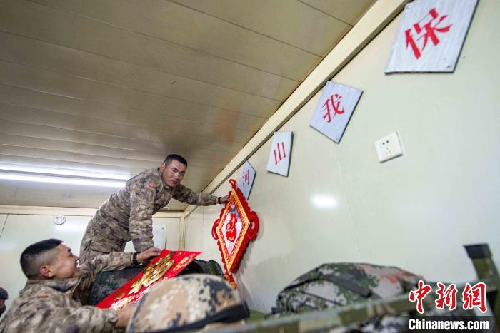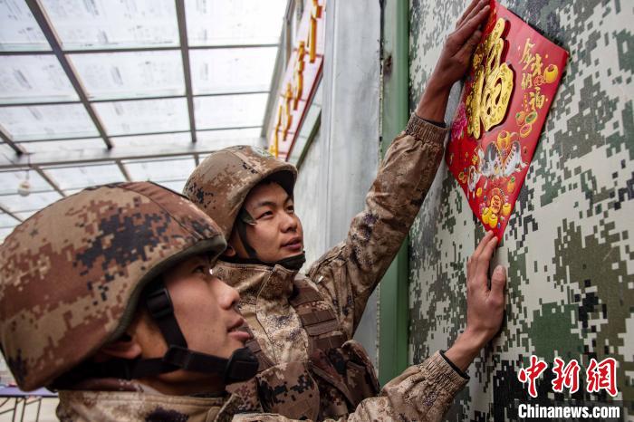 執(zhí)勤點(diǎn)上的官兵們,用“?!弊帧⒅袊Y(jié)將保溫方艙精心點(diǎn)綴裝飾,把祝福和期許默默留在心間?!耙患也粓A,萬家團(tuán)圓?!瘪R雪建是官兵中唯一的零零后戰(zhàn)士,他表示:“一身戎裝接過送來的‘?!?,便是扛下了肩上的使命與責(zé)任,戰(zhàn)位上的新年就是邊關(guān)軍人的守望?!?/p>