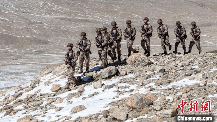 任務(wù)分隊(duì)官兵正在巡邊?!⊥跏鰱| 攝