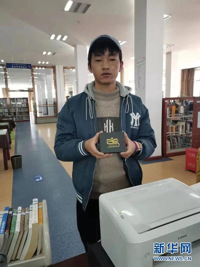 讀者在西藏自治區(qū)圖書(shū)館參加藏漢雙語(yǔ)閱讀平臺(tái)相關(guān)活動(dòng)后,展示內(nèi)存有電子書(shū)、非物質(zhì)文化遺產(chǎn)傳承人紀(jì)錄片等內(nèi)容的“數(shù)字資源寶”優(yōu)盤(pán)獎(jiǎng)品(資料照片)。新華社發(fā)(西藏自治區(qū)圖書(shū)館供圖)