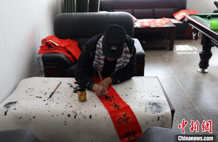 “中國人講究禮尚往來,老人給我們送來了他們親手織的圍巾,我們也要為他們送去祝福?!迸沙鏊窬R磊介紹。在收到老人的包裹后,馬磊為兩位老人寫了一幅祝福對聯(lián),并通過微信視頻向老人獻上了新春祝福,感謝老人一直以來對民警們的關心和掛念。
