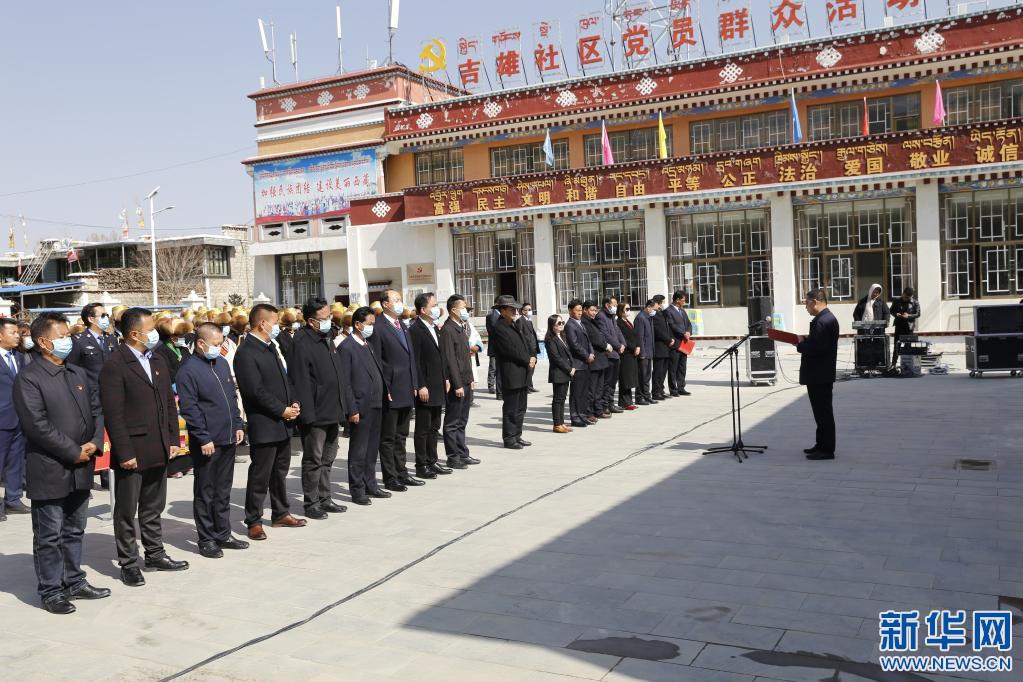 貢嘎縣委黨史學(xué)習(xí)教育“我為群眾辦實事”實踐活動啟動儀式現(xiàn)場 (3月29日攝)新華社發(fā)