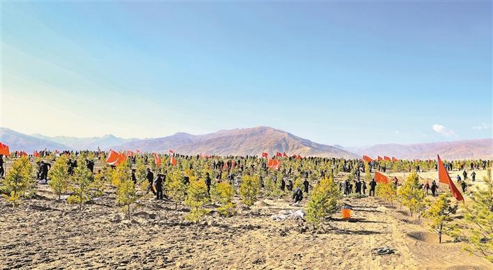 圖為山南市干部職工在雅江河谷開展植樹造林活動。