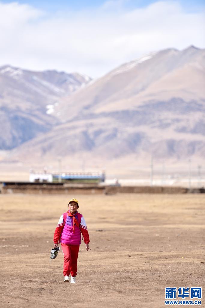 多吉卓瑪放學(xué)后拎著球鞋回家(3月10日攝)。新華社記者 孫瑞博 攝
