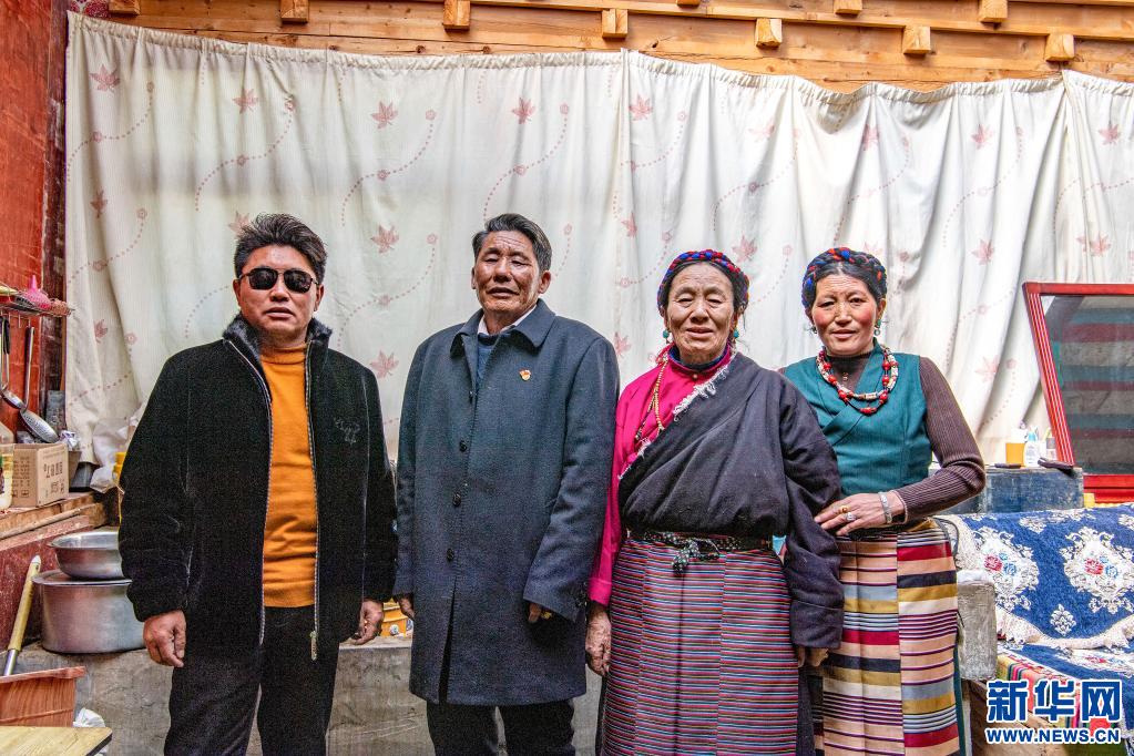 洛松朗加(左二)和家人合影(2月19日攝)。新華社記者 孫非 攝