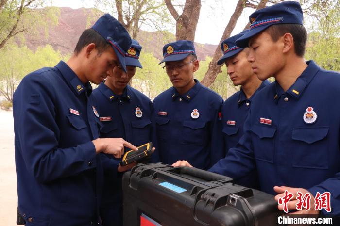 圖為教練員為指戰(zhàn)員演示生命探測(cè)儀操作方法。嘎桑斯格 攝