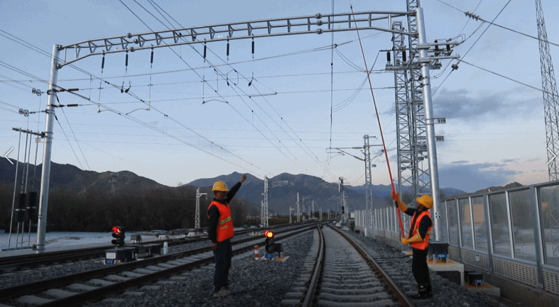 此次接觸網(wǎng)受電,由協(xié)榮站、扎囊站、山南站依次往林芝車站進(jìn)行,全線共有11座變電所、23個(gè)供電臂,整個(gè)受電過(guò)程歷經(jīng)1小時(shí)29分。