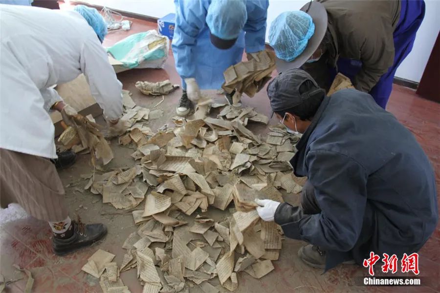挖掘工作持續(xù)了3天才結(jié)束。由于當(dāng)時(shí)寺院條件簡陋,古籍散葉被臨時(shí)裝入編織袋中,足足裝滿了68袋。