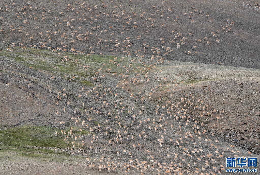 遷徙中的藏羚羊群。(新華社記者 覺(jué)果 攝)