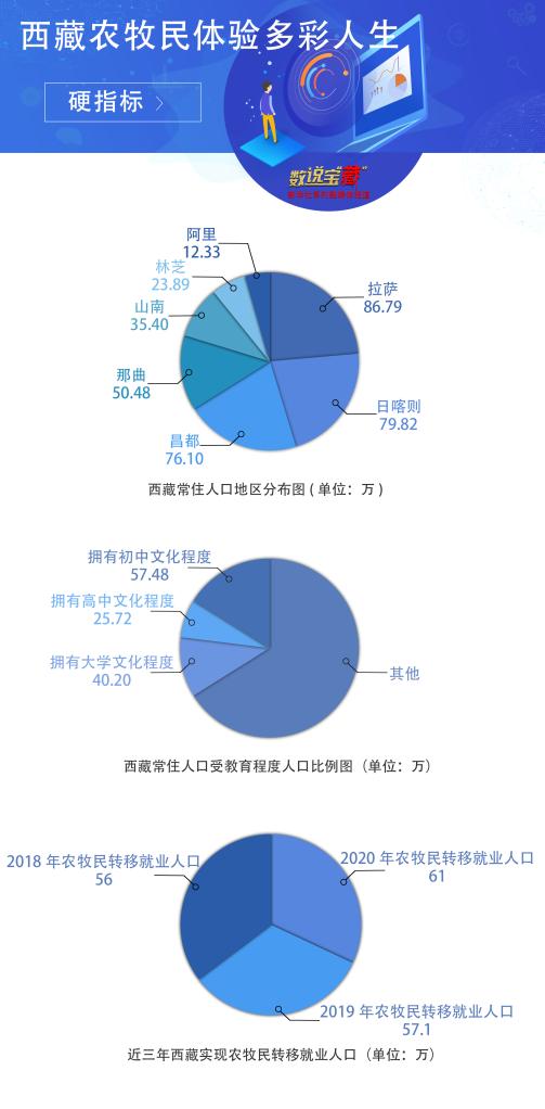 數據顯示,西藏和平解放70年來,常住人口從100多萬人增加到364.81萬人。2019年底,西藏74個貧困縣全部摘帽,62.8萬建檔立卡貧困人口全部脫貧。2020年,西藏地區(qū)生產總值突破1900億元,同比增長7.8%。