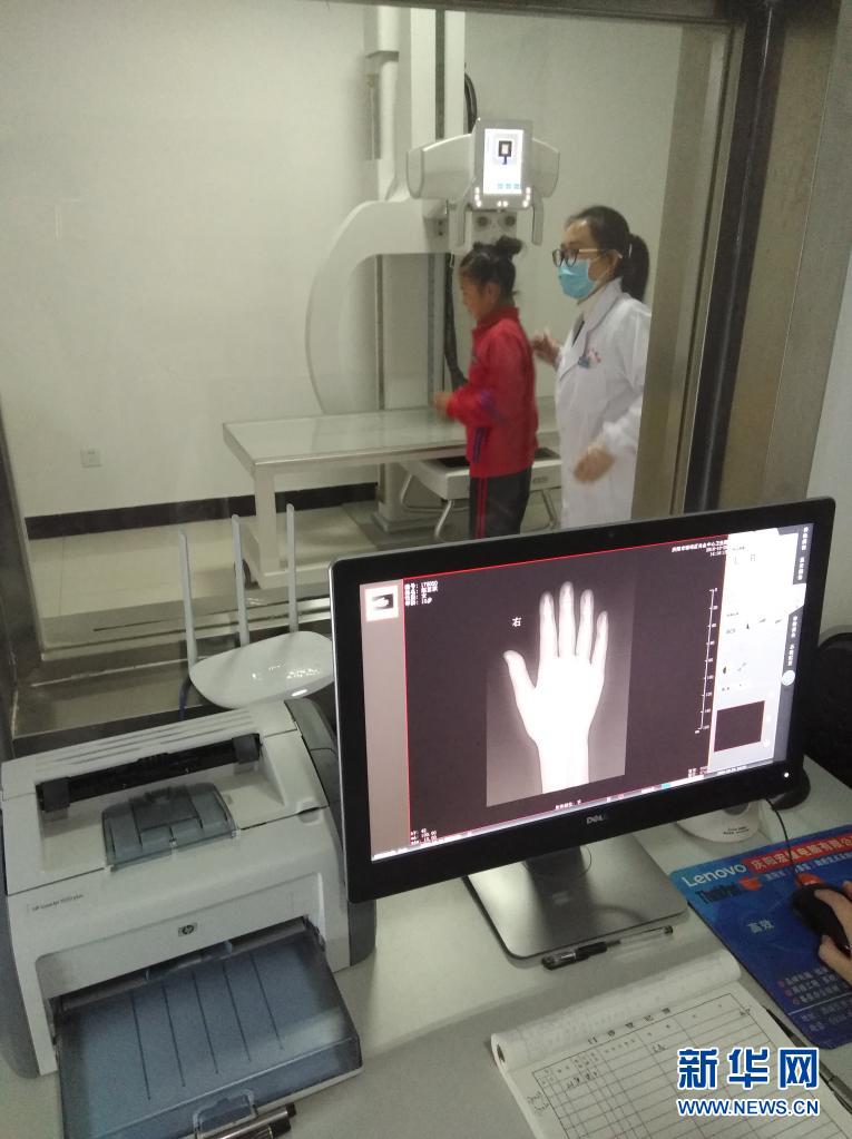 在甘肅省慶陽市,醫(yī)生在對(duì)疑似大骨節(jié)病的兒童開展X線檢查(2018年10月29日攝)。新華社發(fā)