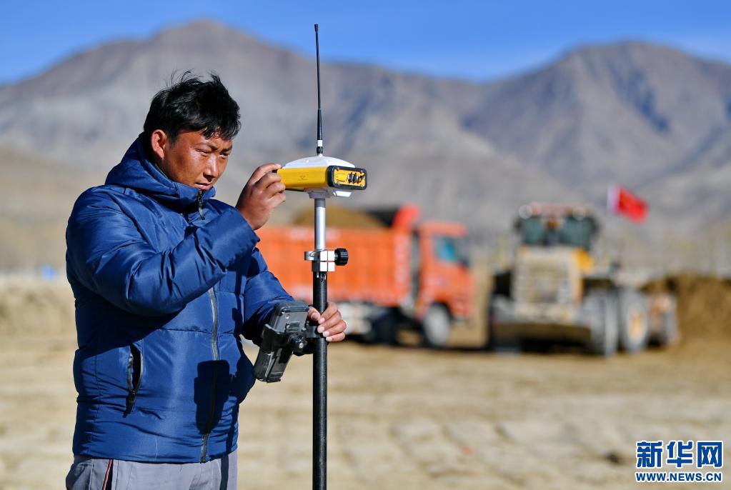 日喀則市桑珠孜區(qū)那塘村,測繪人員在高標準農(nóng)田項目施工現(xiàn)場進行測量(2020年3月1日) 新華社記者張汝鋒 攝