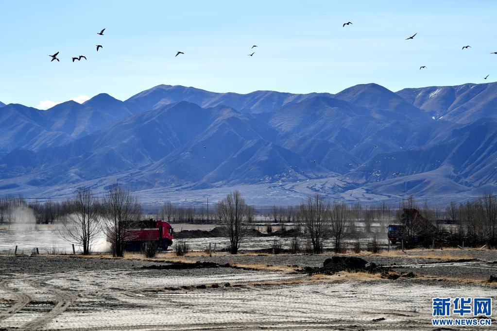 日喀則市桑珠孜區(qū)那塘村,高標準農(nóng)田項目施工現(xiàn)場(2020年3月1日) 新華社記者張汝鋒 攝