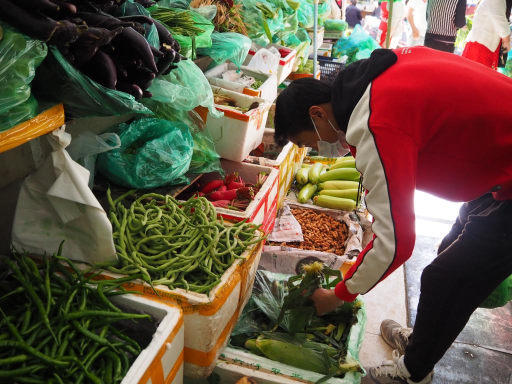 拉薩市民在八一農產品市場挑選蔬菜(2021年6月4日攝)。新華社記者 金一清 攝