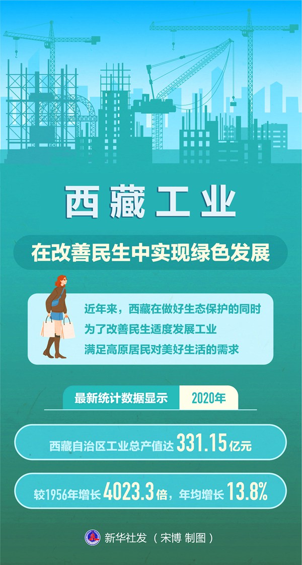 近年來,西藏在做好生態(tài)保護(hù)的同時(shí),為了改善民生適度發(fā)展工業(yè),滿足高原居民對(duì)美好生活的需求。最新統(tǒng)計(jì)數(shù)據(jù)顯示,2020年,西藏自治區(qū)工業(yè)總產(chǎn)值達(dá)331.15億元,較1956年增長(zhǎng)4023.3倍,年均增長(zhǎng)13.8%。