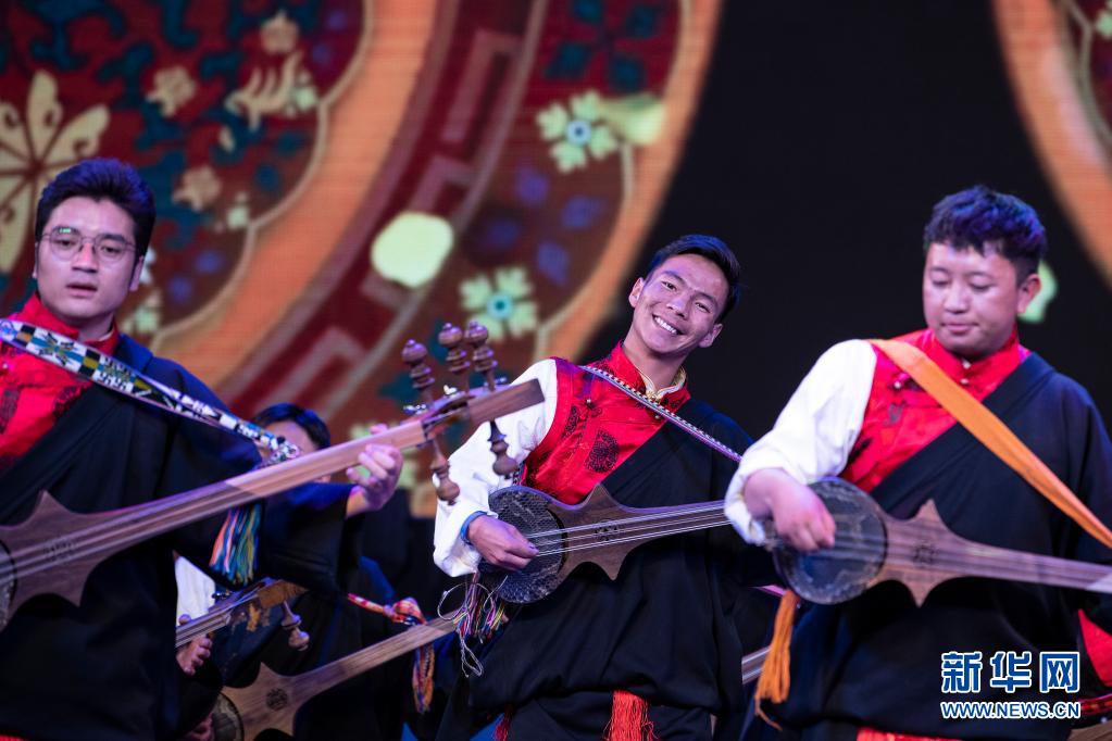 6月12日,在西藏拉薩市的自治區(qū)群藝館,演員表演扎念彈唱《普伊桑林貢巴》。新華社記者 孫瑞博 攝