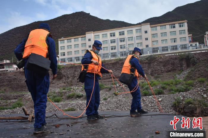 消防指戰(zhàn)員測(cè)量水位?!】ㄈ魠^(qū)森林消防中隊(duì)供圖