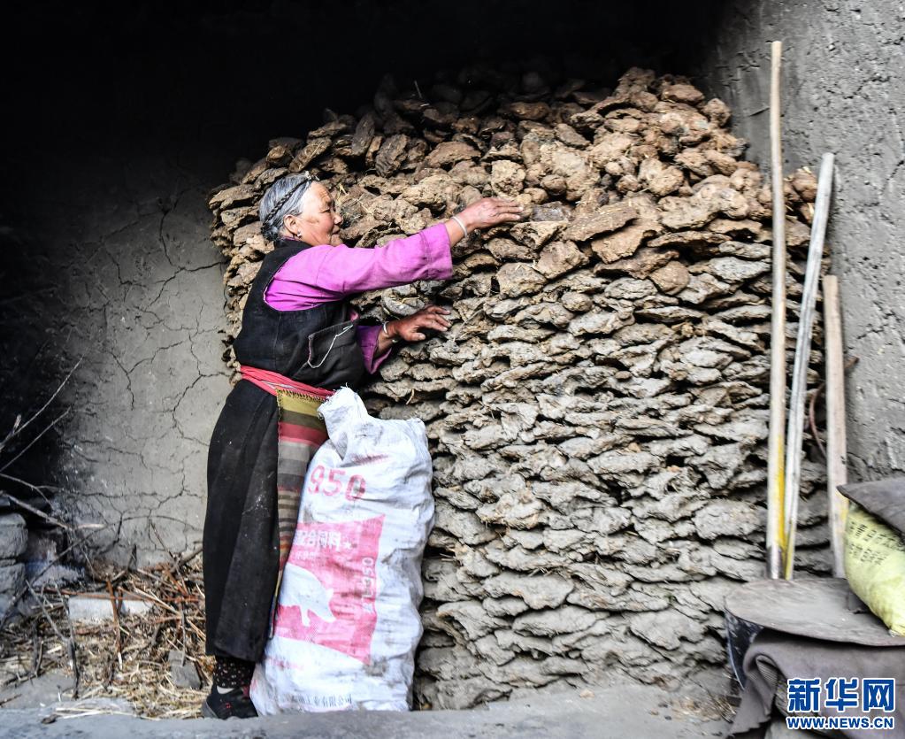 次旦拉姆在家中擺放牛糞餅(6月3日攝)。新華社記者 晉美多吉 攝