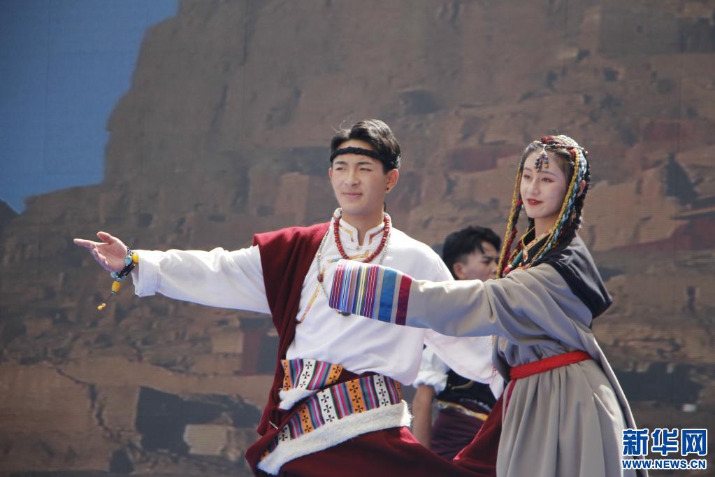 西藏直播示范基地揭牌暨首屆直播節(jié)開幕式歌舞表演。劉金鵬攝