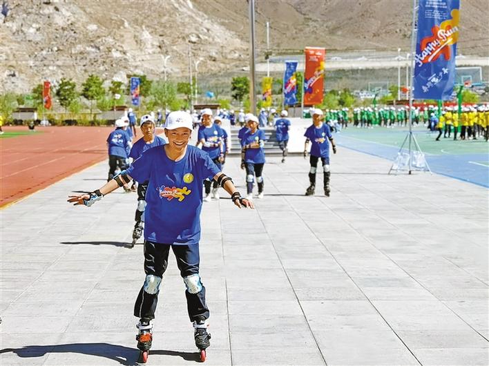 圖為2021年“奔跑吧·少年”兒童青少年主題健身活動西藏分會場示范活動。記者 鄭璐 袁海霞 攝