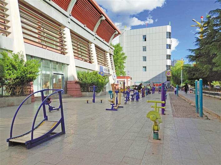 圖為昌都市全民健身公益活動中心前供市民運動的健身器材。 記者 桑鄧旺姆 攝