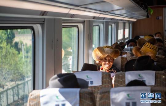 來自山南市貢嘎縣杰德秀鎮(zhèn)杰德秀村的巴珠,今年68歲,他一會兒從車窗眼望高山峽谷,一會兒摸摸車內現(xiàn)代化設施,這是他頭一次坐火車?!皬团d號和牛車比起來,像是在飛翔?!彼χf。