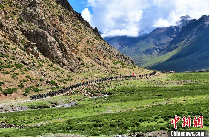 圖為西藏軍區(qū)某合成旅在野外拉練,隊伍負(fù)重前行。念美多杰 攝