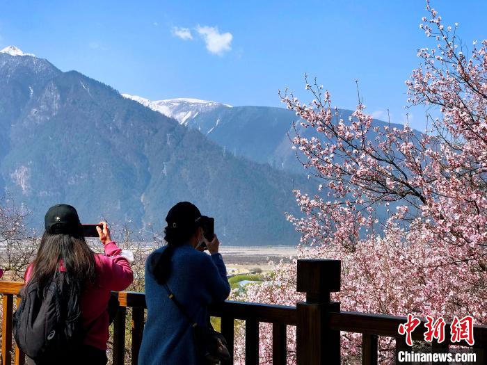 圖為游客在林芝賞桃花。(資料圖) 趙延 攝