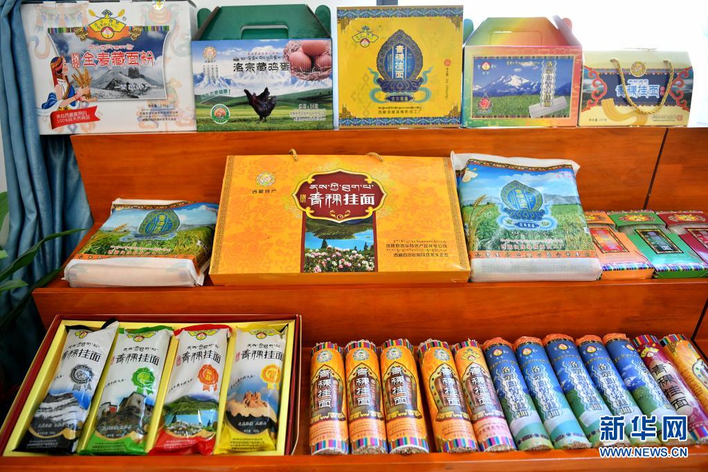 洛宗特色產(chǎn)品開發(fā)公司生產(chǎn)的青稞掛面等深加工產(chǎn)品(7月24日攝)。新華社記者 李鑫 攝