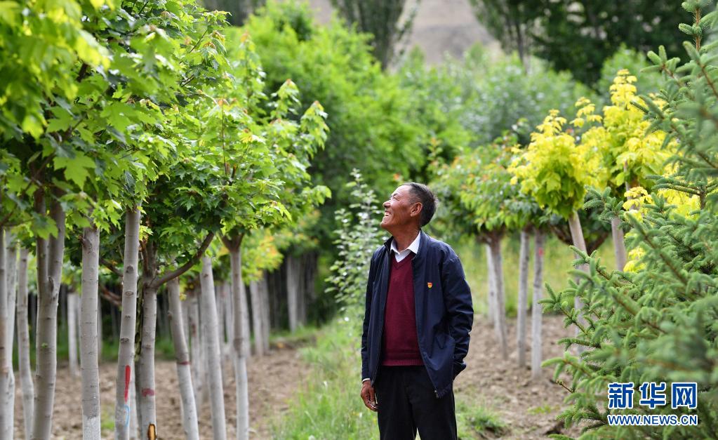 山南市扎囊縣某苗圃基地負(fù)責(zé)人邊久在查看基地內(nèi)栽種的樹(shù)苗(7月20日攝)。新華社記者 晉美多吉 攝