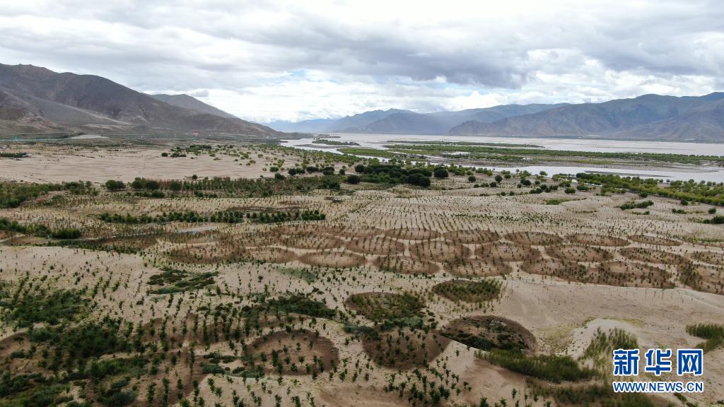 雅魯藏布江山南段沙丘上的人工林(7月20日攝,無(wú)人機(jī)照片)。新華社記者 晉美多吉 攝