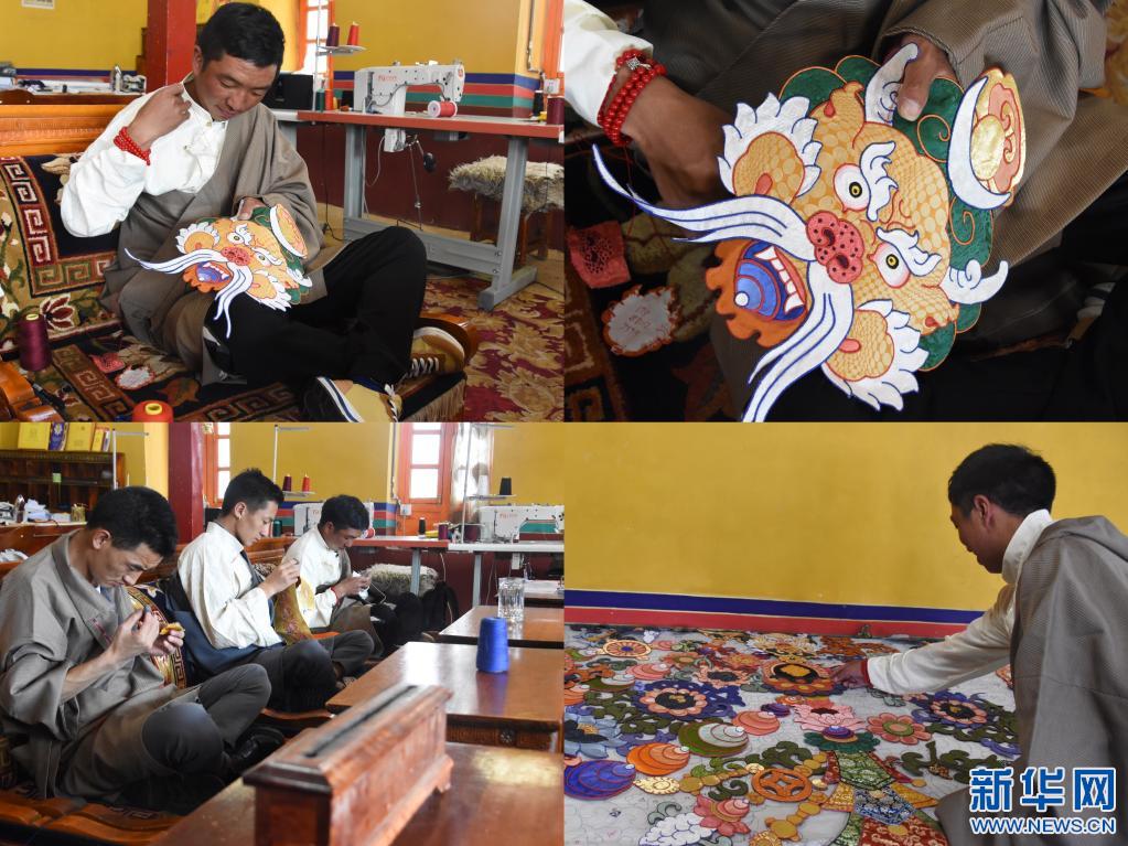 “一幅這樣的唐卡需要近兩年時(shí)間縫制,因?yàn)橹谱骶?,藝術(shù)價(jià)值高,一直供不應(yīng)求?!彼骼柿_拉說(shuō),小學(xué)畢業(yè)后在家放牧的他,在政府的幫助下來(lái)到拉薩學(xué)習(xí)傳統(tǒng)技藝,目前每月收入近5000元,是堆繡改變了他的人生軌跡。