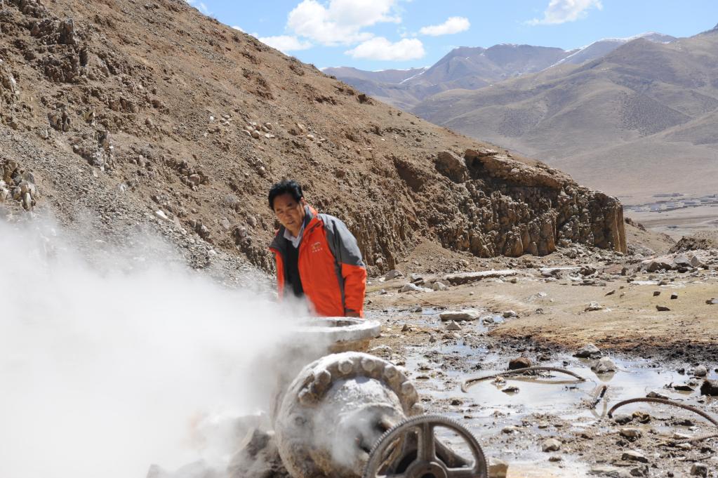 中國(guó)工程院首位藏族院士多吉在觀(guān)察羊八井地?zé)豳Y源(2010年9月6日攝)。新華社發(fā)