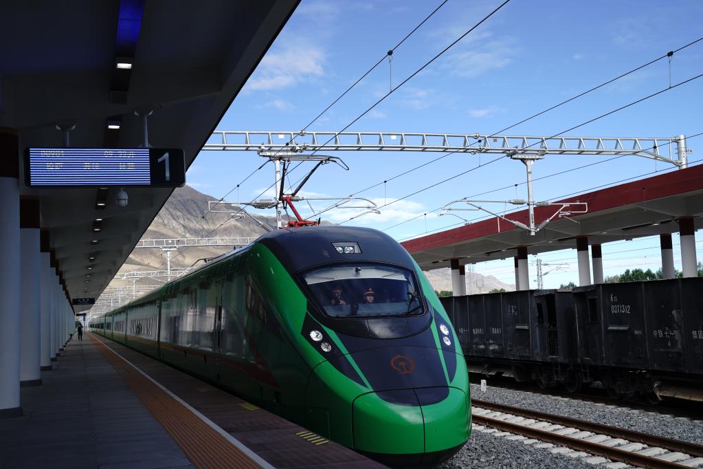 拉林鐵路動(dòng)車(chē)組??吭谏侥宪?chē)站(2021年6月21日攝)。新華社記者劉洪明 攝