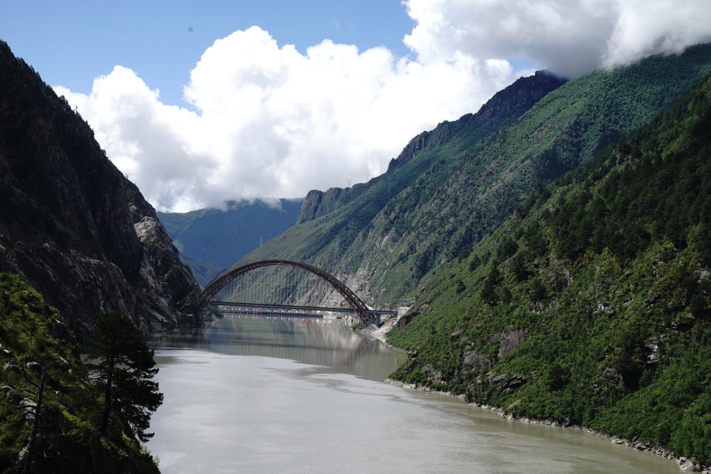 拉林鐵路藏木雅魯藏布江雙線(xiàn)特大橋(2021年7月11日攝)。新華社記者劉洪明 攝