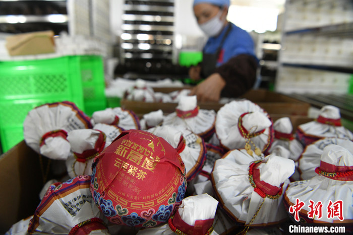 圖為8月12日,云南大理,包裝好的緊茶。中新社記者 劉冉陽 攝