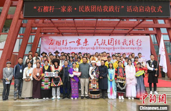 圖為學(xué)生們?cè)诘谖鍖梦鞑厍嗌倌昝褡鍒F(tuán)結(jié)教育實(shí)踐營(yíng)活動(dòng)啟動(dòng)儀式上合影留念?!∝暩聛?lái)松 攝