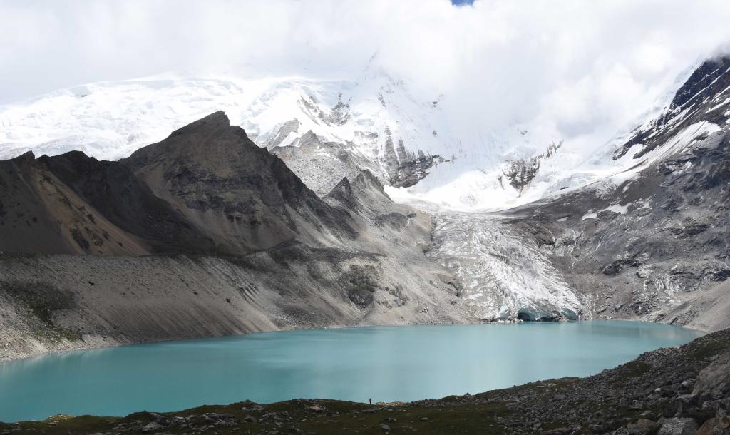 西藏日喀則市亞東縣境內(nèi),超過海拔5000米的冰川下有一個湖泊——朗錯。通過分析壩體形態(tài)特征,科考隊初步分析判斷這是一個冰川終磧體形成的堰塞湖,即冰湖。冰湖是喜馬拉雅山脈常見的堰塞湖類型之一。