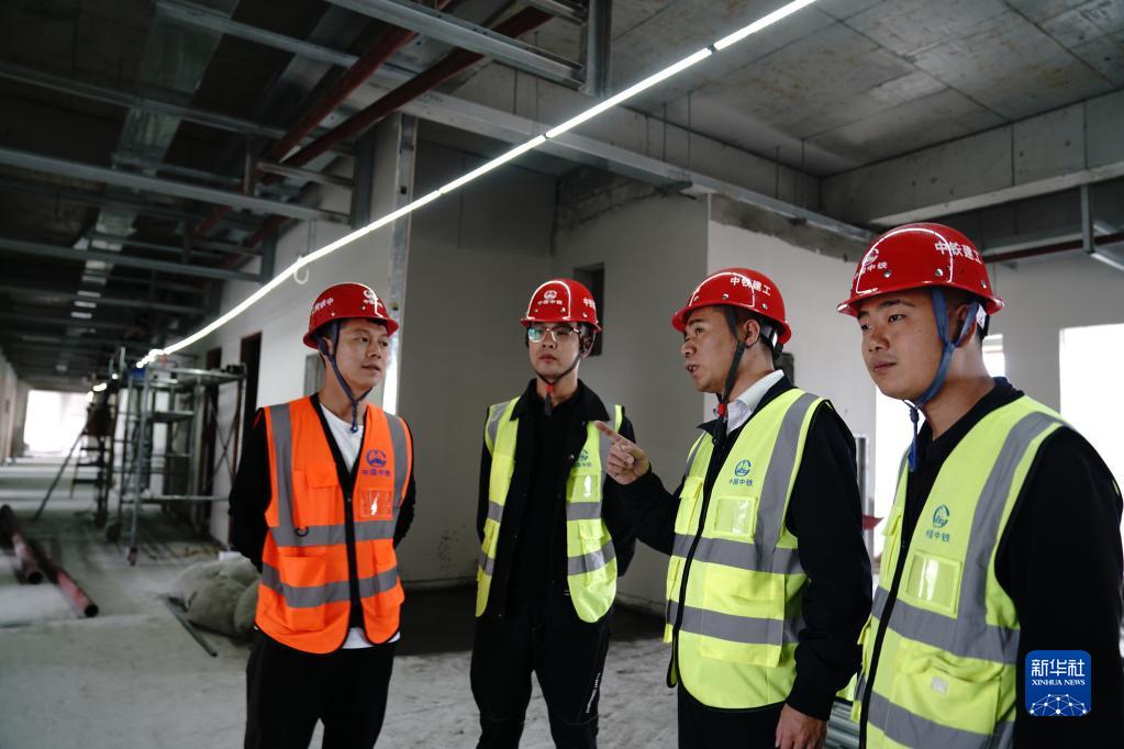 張磊正在查看項目室內(nèi)施工現(xiàn)場(2021年9月18日攝)。新華社記者 劉洪明 攝