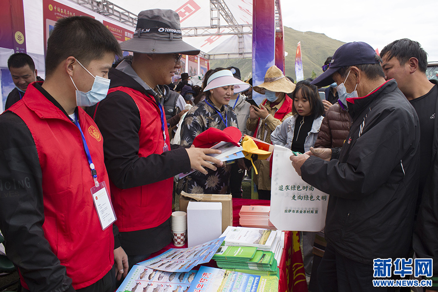 9月23日,工作人員現(xiàn)場發(fā)放農牧業(yè)科技知識宣傳冊。新華網(wǎng) 達次 攝