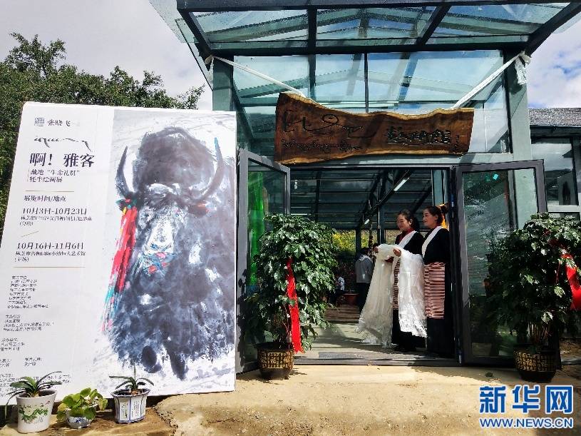 10月3日,在拉丁嘎村鄉(xiāng)村藝術(shù)館開(kāi)幕的牦牛繪畫(huà)展。(受訪者供圖)