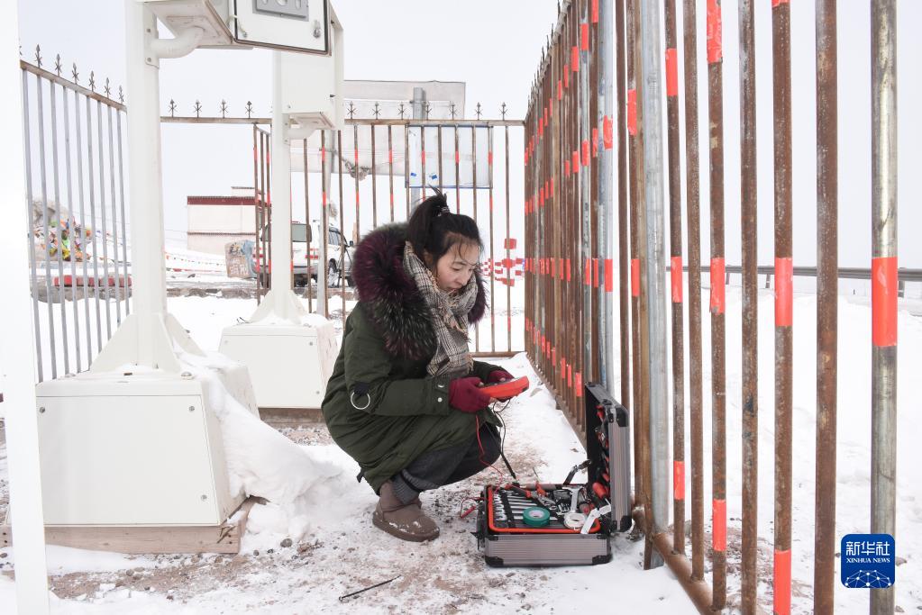 洛松拉姆在世界海拔最高有人值守氣象站——安多氣象局唐古拉山交通自動(dòng)氣象站準(zhǔn)備檢修設(shè)備(2019年1月28日攝)。新華社記者 周健偉 攝